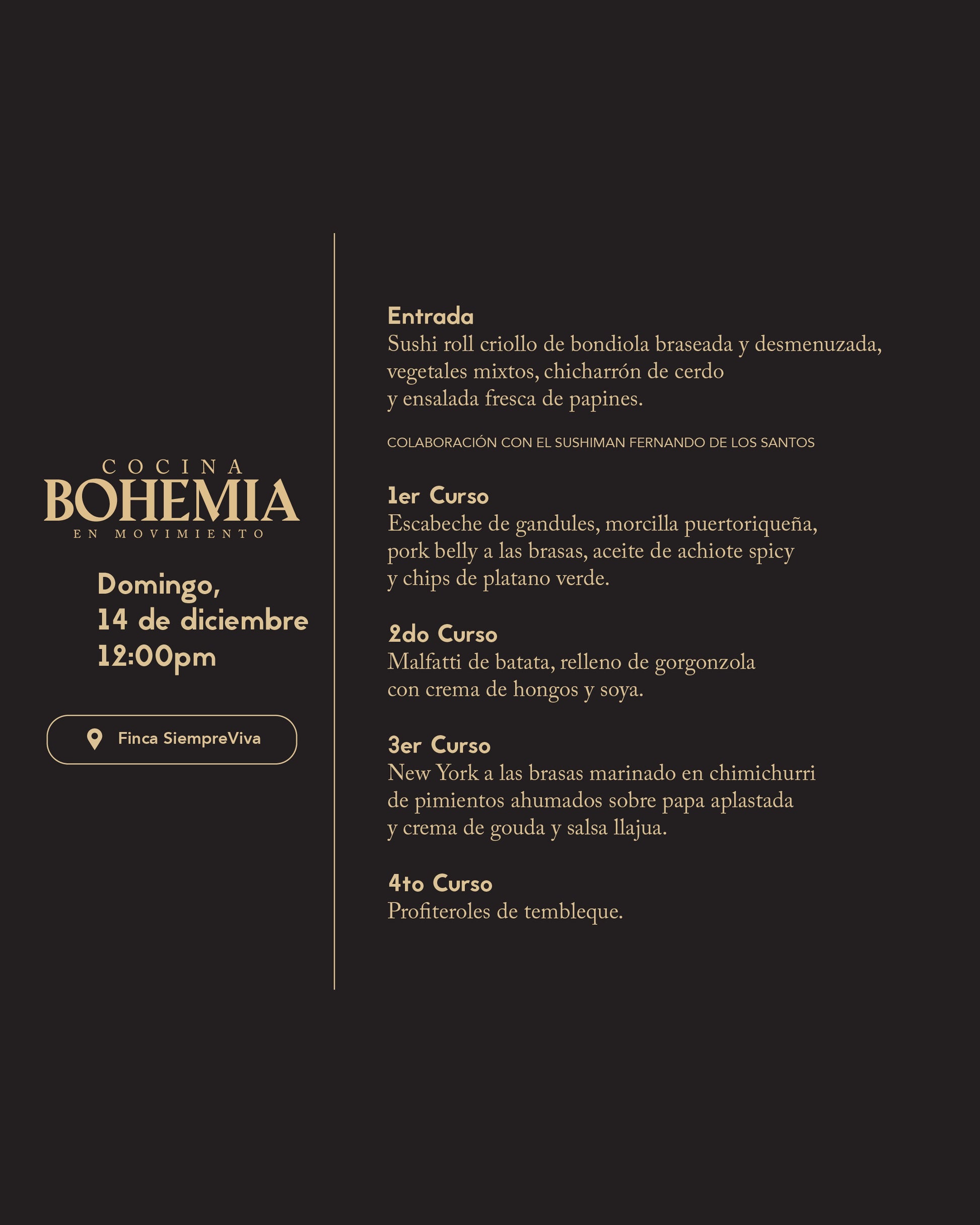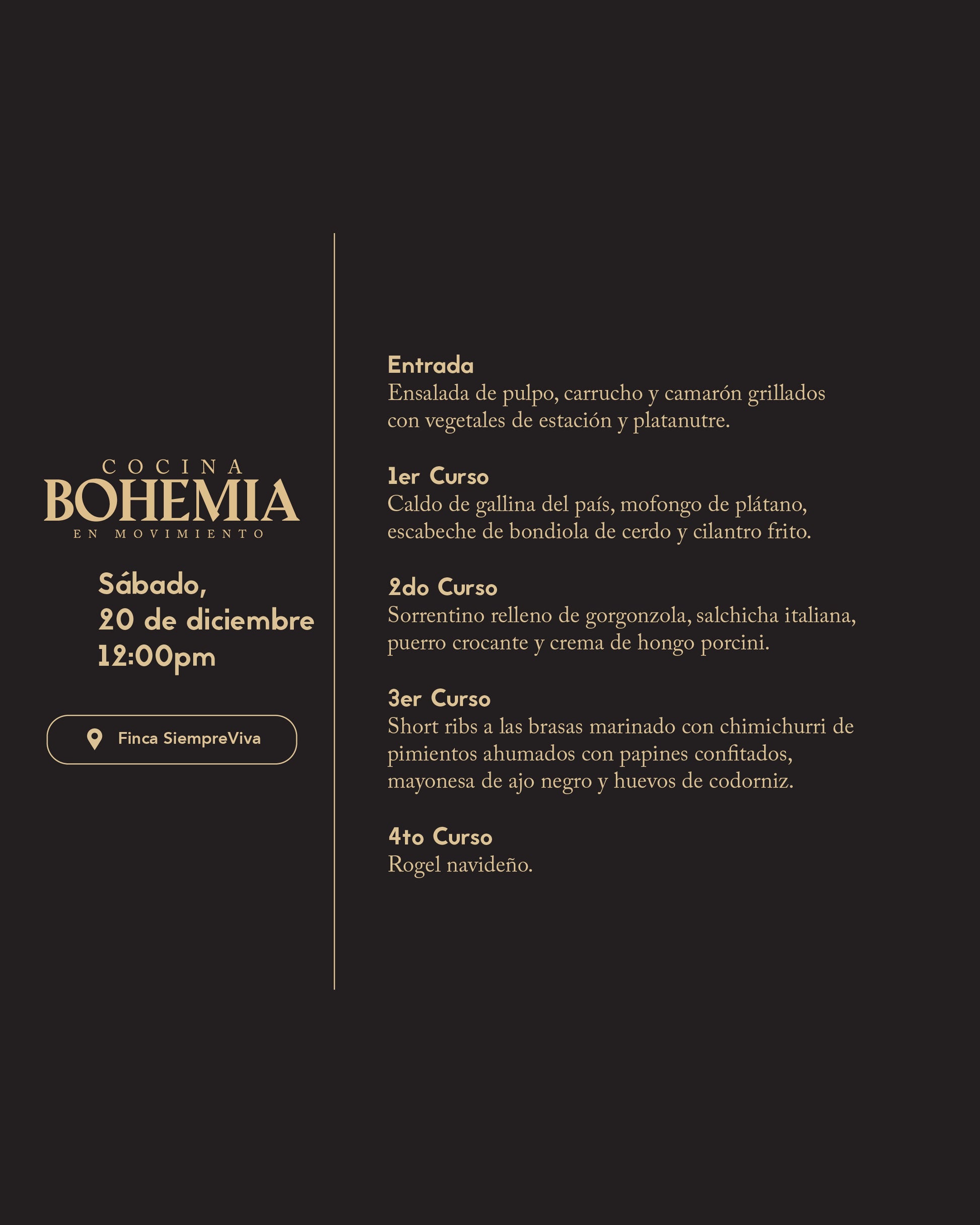 Para consultas, contáctanos en reservas@bohemiacocina.com. La compra de este boleto implica la aceptación de estos términos.